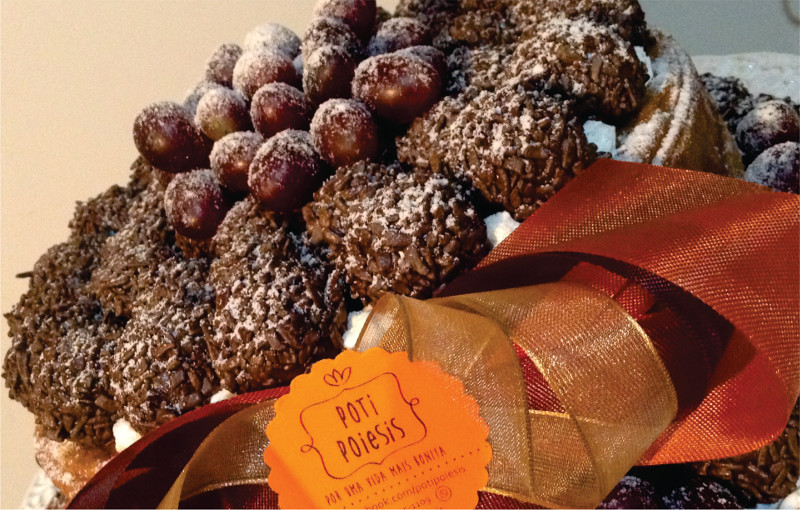 | Caixinha de chocolate, creme de confeiteiro, macadâmia, amendoa, castanhas e cereja com cabinho. | ||